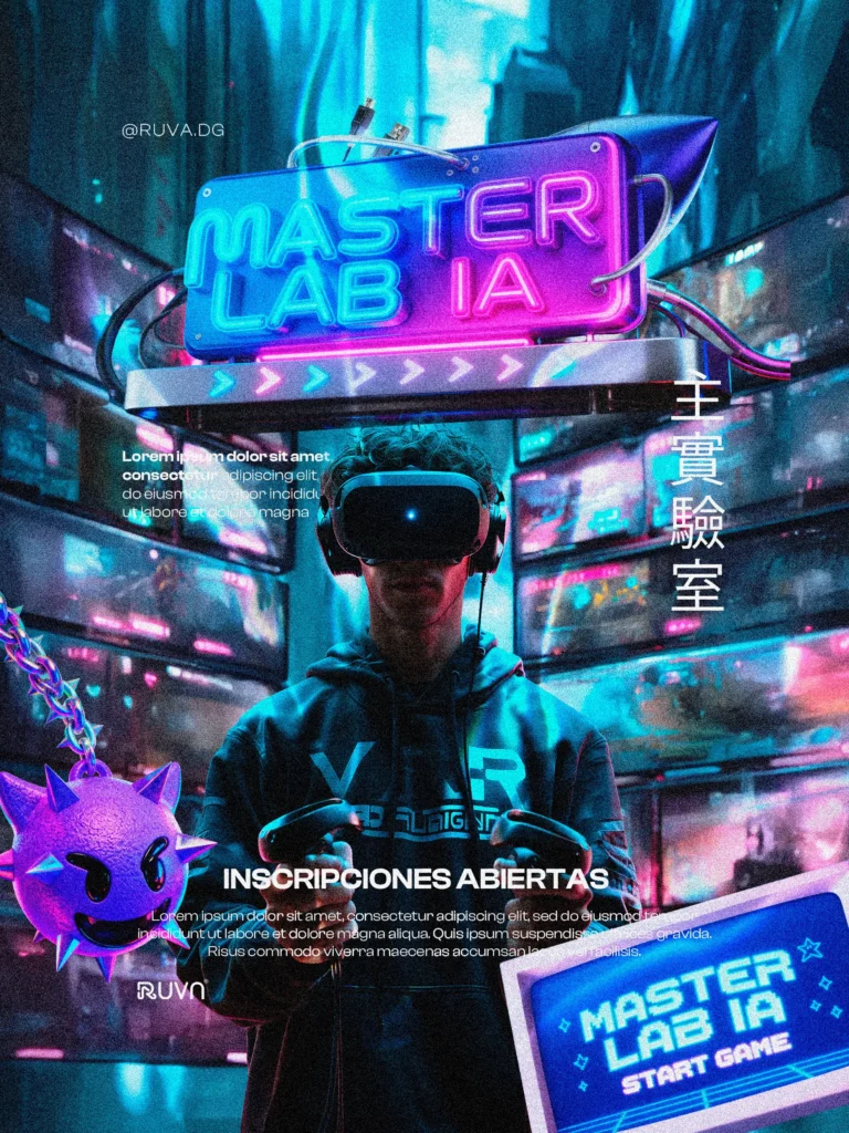 Master Lab IA es el laboratorio creativo que te obliga a crecer y a producir diseños 10 veces más rápido con mejor calidad profesional.